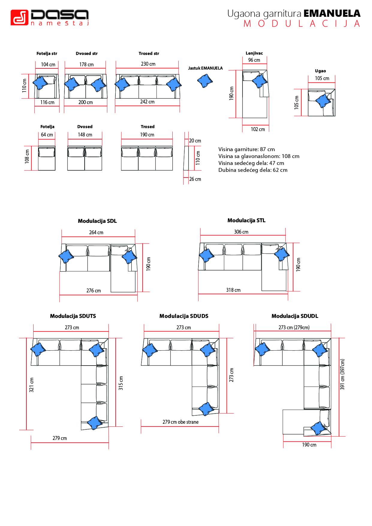 - Oznake "X" su za ekstra kvalitetnu vrstu mebla i eko kože
