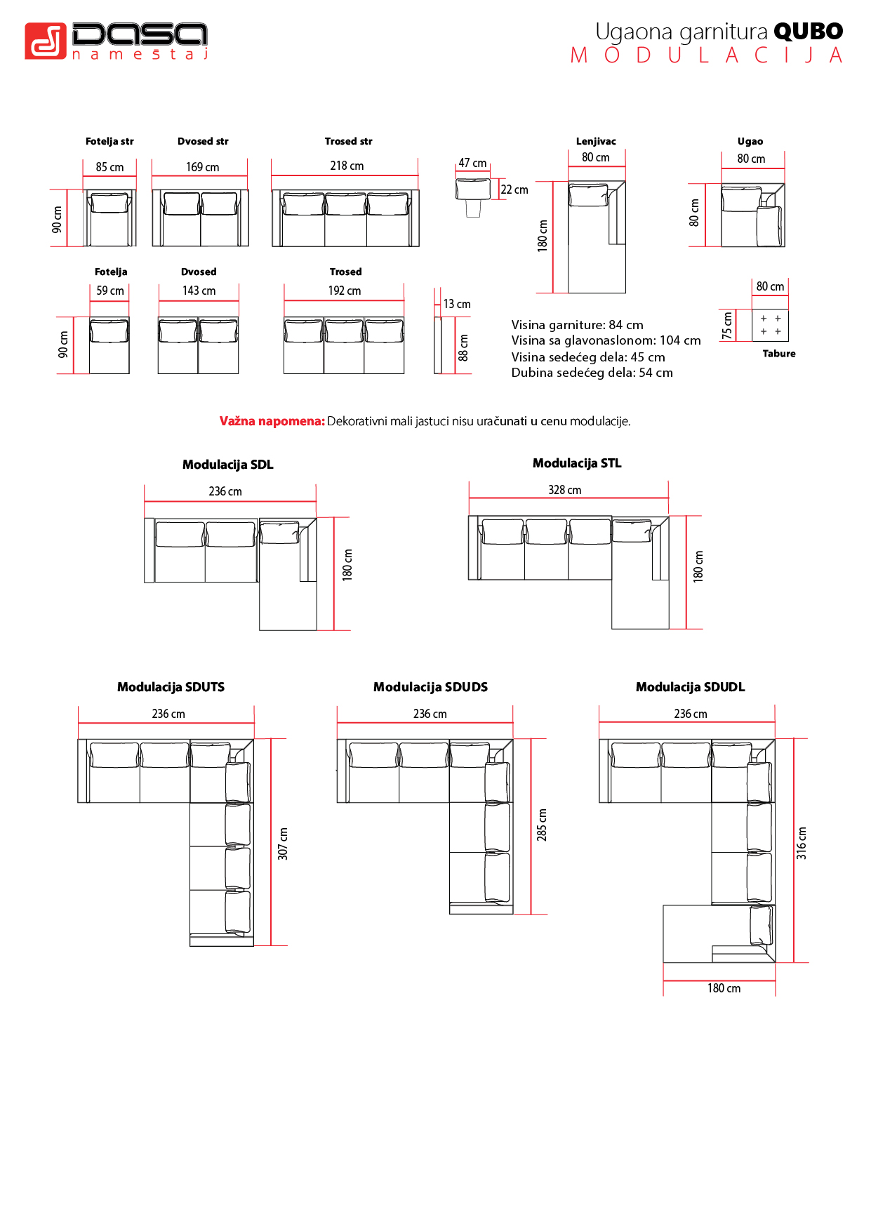 - Oznake "X" su za ekstra kvalitetnu vrstu mebla i eko kože